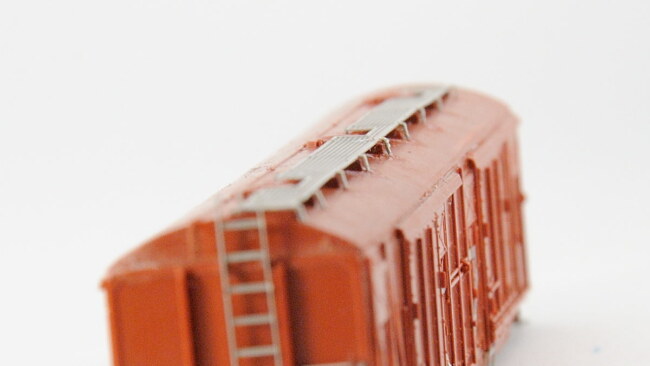 Vůz je slepený opravdu snadno a rychle. Zásadní je to slušně začistit, slepit to pak dokáže úplně každý. Je potřeba pohlídat si čela, jedno je jiné a má přípravu na žebřík, to je umístěné samozřejmě pod koncem střešní lávky.