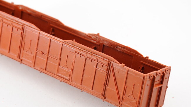 Bočnice se zdá být univerzál pro 1. i 2. sérii a nepodařené výlisky s poškozenými vzpínadly putují do krabic, kde budou podvratové výztuhy. Detailnost bočnice je perfektní, tam už to není kam dál hnát a nic tam zběžným pohledem opravdu nechybí, nic není ošizené ani zjednodušené. Tady už není co zlepšovat.