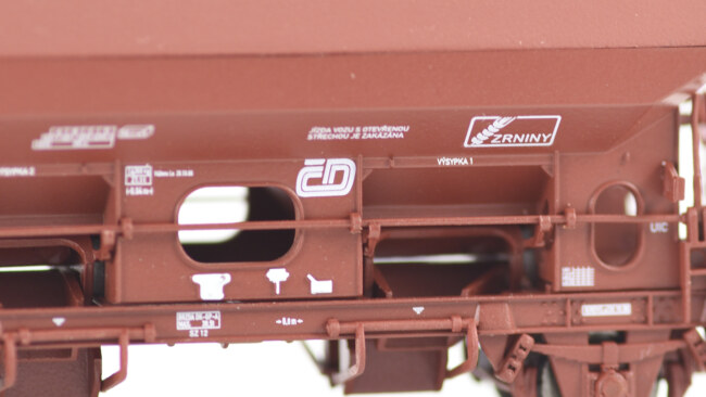 Potisky jsou na úrovni plnohodnotného modelu. Nechybí, kromě čelních popisů, snad nic podstatného. Některé vozy měly velká loga ČD nebo ČD Cargo, to lze snadno řešit obtiskovými sadami, které již dlouhou dobu nabízí Rosťopiš – buďto pro Kils, nebo pro dvouvozovou soupravu Laails.