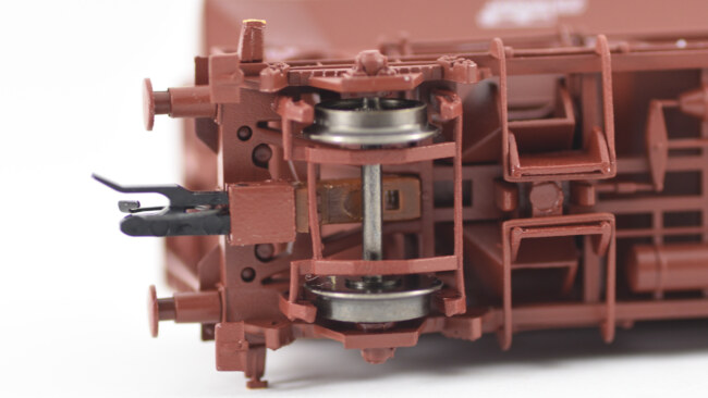 Jeden z důvodů, proč spadá vůz do kategorie Start, je jistě jeho stará verze pojezdu bez natáčecích náprav. Přesto je to stále stejný spodek z vozů Gbs nebo vozů Laaps.
