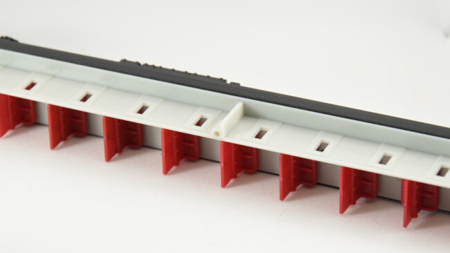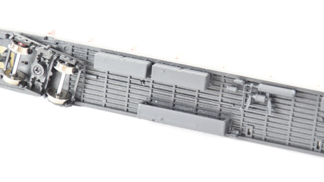 Na jedné straně jsou dekly a mřížky ve střeše, jejich plasticita je v pořádku. Mřížka nad dveřmi by chtěla barevně probarvit alespoň v domácích podmínkách napuštěním nějakým washem, protože jsou ve skutečnosti skutečně znát otvory „do tmy“. To se ale v rámci výlisku bude řešit vždy těžko. Případně by šlo pořešit obtiskem.