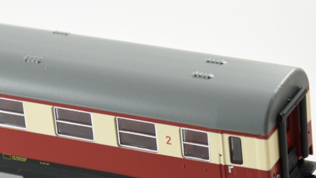Potisk, kvalita nástřiku – vše perfektní. Rámy oken jsou stříbrné a jsou opět trochu zjednodušené, ale ani Tillig je nedělá lepší (výjimka je Kuehn).