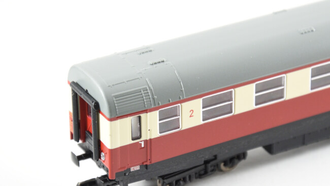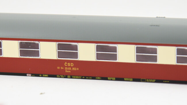Další nepřesností je vzdálenost oken. Je to stejná chyba jako v H0. První okno oddílu má nesprávně vzdálenost od dalšího okna – sloupek mezi WC a první kupé by měl být užší a rozestup mezi okny kupé by pak měl být všude stejný.