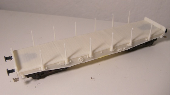 Ještě k podlaze vozu – je vidět, že se možná podlaha na mustru trochu vzpříčila a některá prkna tak vypadají vystouplejší než jiná. To považuji za výhodu, protože v reálu jsou prkna také různě vystouplá, ale myslím, že úmysl to nebyl. Je to opravdu jen malinko a je to vidět jen při bližším pohledu a ničemu to nevadí. Takže budou spokojeni náročnější modeláři, že mají „něco navíc“ i méně pokročilí, kteří takový detail řešit nebudou.