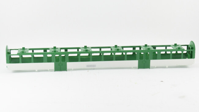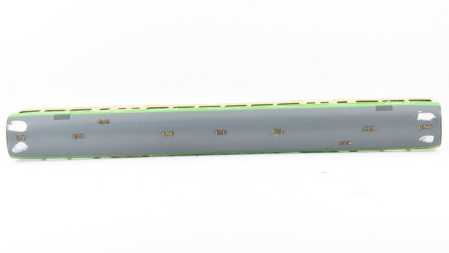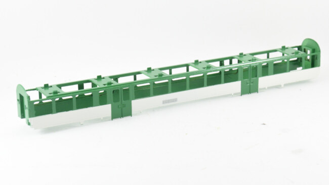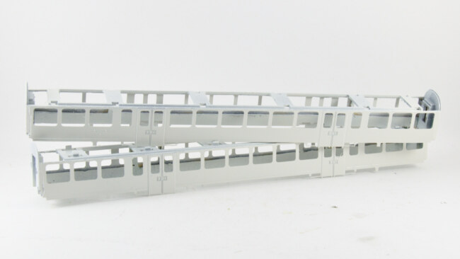 Ale co se už tolik neříká, že je jiný počet oken středního oddílu 5 vs. 6. Je to tím, že československá objednávka požadovala vyšší přepravní kapacitu, proto přibylo jedno okno (a jeden fiktivní oddíl) navíc. Na tomto obrázku je také vidět asi jediný nedostatek dárcovských vozů – mají zúžení na čelech, což české vozy nemají. Asi málokdo to pozná, ale věřím, že někdo to může považovat za zásadní. Uvidíme s postupem stavby, jak moc bude toto zúžení vidět po nalepení bočnice.