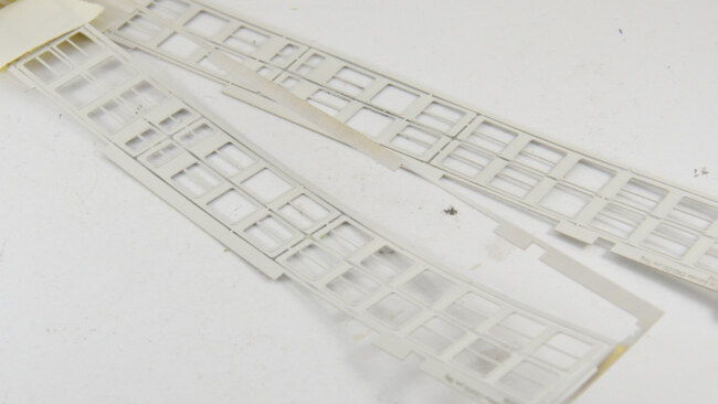 Na druhém voze už jsem nalepil prostřední okna správně.