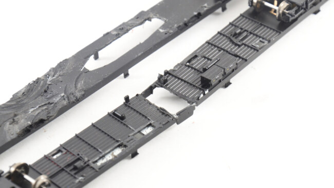 U flixtrainu můžou zůstat příčky docela silné, takže pevnost vozu při řezání je lepší. Vše jsem začistil postupně pilníkem a nožíkem.