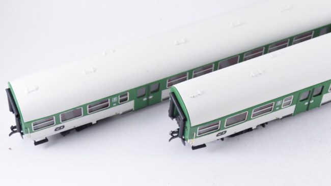 Pro ověření zkouška na pojezdu – střecha jde u obou vozů zacvaknout dost natěsno, ale jde. Případně doporučuji střechy na čelech malinko zabrousit (zkrátit).