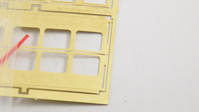 Vše by bylo lepší osazovat už lakované, ale použitím vhodné barvy lze natírat leptané doplňky i bez použití základovky. Zde barva LifeColor černá, drží na leptu dostatečně dobře. Černou fixou jsem zkusil vzít ještě gumy na dveřích, nevyšlo to moc výrazné, ale černá tam znát je.