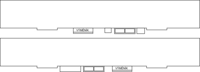 A z druhé strany vpravo od výměníku. Vše je zde soustředěné mezi střední vstupy a většinou i mimo posuvné mechanismy dveří, aby bylo vše přístupné.