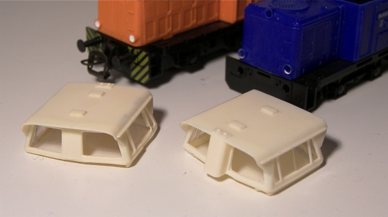 Obě Rosničky jsem zbavil kabin. Jedna šla celkem dobře, druhá byla přilepená fest. Nakonec se s použitím hrubé síly povedlo. Ale co už se mi nepovedlo, bylo odlepit zasklení. Hrozilo to spíš totální destrukcí kabiny… Takže jsem se rozhodl obě lokomotivy ponechat v takovém nátěru, abych mohl ponechat krémovou kabinu a nemusel rozdělávat zasklení.