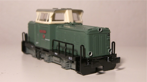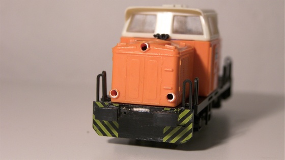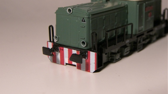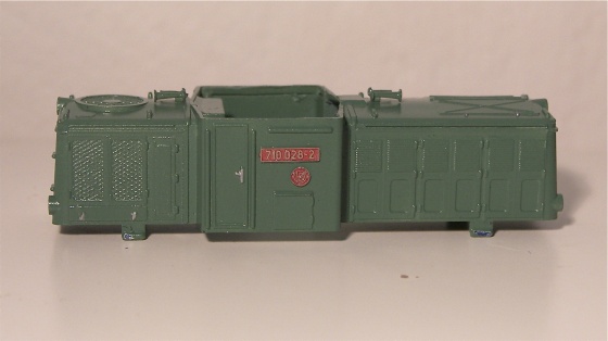 Kapotu jsem stříkl zelenou dle vlastního uvážení odpovídajcí spíše osdstínu prvních sérií. Nalepil jsem i leptané tabulky a logo ČKD. Kliky jsou natřené Hliníkem. Ten odstín zelené je možná takový „khaki“ a lokomotiva působí tmavším a matnějším dojmem, ale myslím, že k silnější patině, kterou plánuji, to nebude na škodu a bude to nakonec lepší, než více křiklavé odstíny, které se hodí spíše pro nově nalakovanou lokomotivu…
