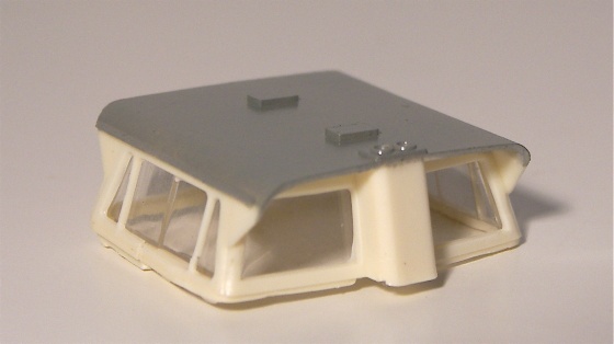 Střecha kabiny je v reálu šedivá, takže šup na přestřik.