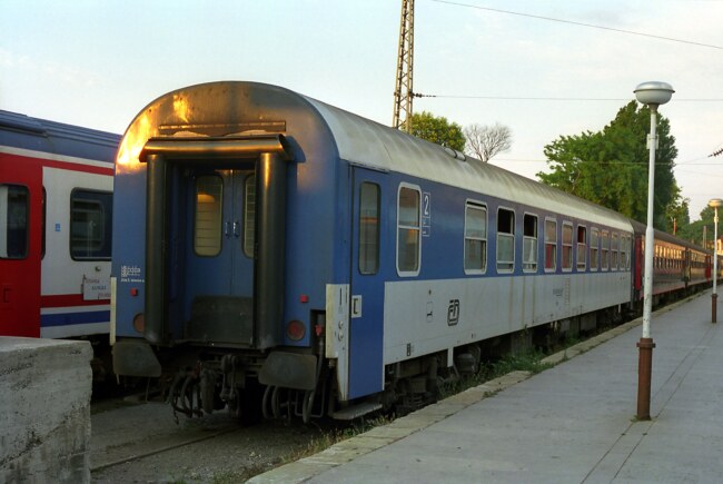Jedno BRcm bylo vyčleněno pro zájezdy železničářů a dostalo modrý nátěr, jako lehátkový vůz. Zde zachycené v Istanbulu, kam svojí provozní patinou tak akorát zapadne… (Zdroj: https://commons.wikimedia.org/wiki/File:Bf_Istanbul-Sirkeci,_%C4%8CD-BRcm.jpg)