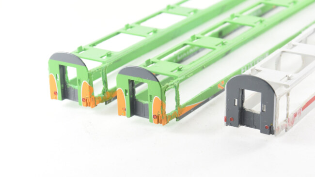 Pro úpravu na vozy pro ČSD je ještě potřeba zabrousit původní světla (případně přetmelit) a vyvrtat je blíže spodní hraně vozu. V tu chvíli jsou vozy připravené na lakování.