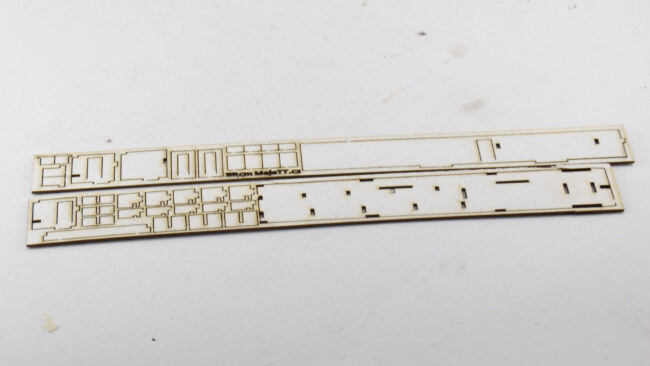 V čem pro mě vždy TT-model vyčníval byla kvalita provedení okenních rámů – jejich tvar a provedení. Dá se říct, že konečně se jim povedlo něco přiblížit v podobě leptu. Jinak je vidět, že ačkoliv jsem nijak od TT-modelu neopisoval, tak rozměry a rozmístění všech prvků na bočnici jsou ve většině případů velmi podobné.
