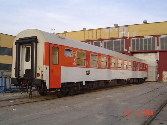 Můj výběr se nakonec ustálil na průniku variant – je to BRm, ale má piktogram lehátek. Evidentně u této řady, kde bylo v provozu cca 5 vozů, nelze vybrat běžný nátěr – v průběhu času a vozů se to prostě živelně měnilo. Na této fotce má ještě staré piktogramy bufetového oddílu.