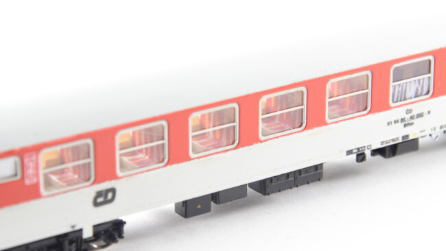Zároveň je zde už 6 sedaček v oddílu proti interiéru Tillig, který naznačuje jen rovné lavice. Vozy dostaly šest sedaček v kupé někdy v roce 1994 – 1996, předtím měly sedaček osm.