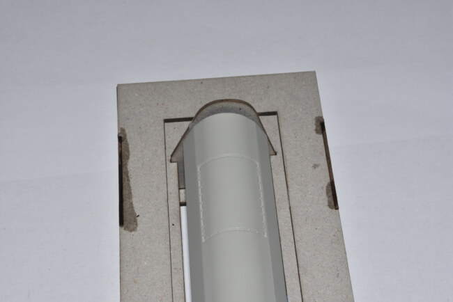 Díly V. patří cca doprostřed. S nějakým přesným umístěním si nelamte hlavu. Na rozdíl od dílu IV. tady není nutné slícovat vnitřní hrany. Naopak jsem je umístil cca 0,5 mm od vnitřní hrany, aby později nevadily vložené šabloně. Jen dejte pozor, ať nepřekryjete vyřez, kam později zapadne díl II.