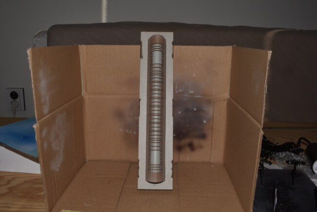 Na fotce vidíte můj improvizovaný stříkací box z kusu krabice.