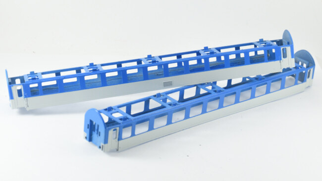 Začal jsem klasicky – najít vhodného dárce. Hledám rozdíly dle dvou vs. tří stupňů schodů, dle spodní výbavy s výměníkem a bez a dle střechy, aby neměla mřížky odporového topení. Taková kombinace od Tilliga neexistuje, je tedy vhodné sáhnout do zásob a kanibalizovat ještě třetí vůz pro vhodné díly. Ale to už jsem zde mnohokrát zmiňoval. Zbyde třetí torzo, ze kterého časem ještě něco vymyslím. Dále nalepit bočnice a nastříkat RAL7035.