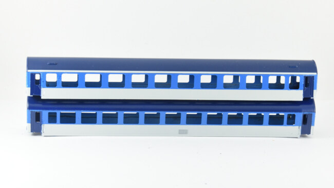 Tady mě ještě napadlo zajímavé srovnání bočnice lept (nahoře) a originál Tillig B249 (dole) hlavně s ohledem na provedení oken – velikost, síla rámů a radius rohů oken. Na druhou stranu je potřeba říct, že opět kdo hledá jen rychlíkáč v Najbrtu, toho asi Bee273 nezaujme, protože vnější rozdíl není proti obyčejnému B zas tak velký. Kdo chce reálnou (a odlišnou) soupravu, ten Bee273 třeba ocení.