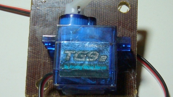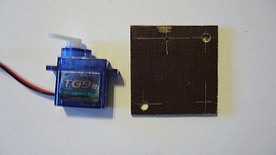 Jako držák serva používám obyčejnou kuprexidovou destičku. Kdo chce, může si držák vyrobit třeba z plechu, nebo destičky evergreen.