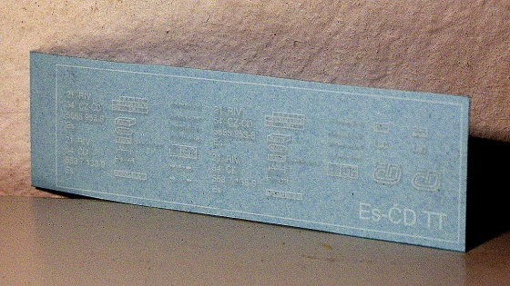 Obtisky ve verzi ČD Es – záměrně jsem vytáhnul kontrast, aby se tam dalo něco přečíst… Obtisky vypadají v profi kvalitě – podobný princip jako u Detailu – každý popisek je lakovaný zvlášť a tak se velmi ulehčuje jeho aplikace.