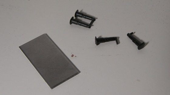Přibalené jsou 4 nárazníky od p. Čambalíka a součástí je i závaží do vozu. Nad těmito díly jsou vidět detailněji čelníky s otvory pro nárazníky (ty zaplují do otvoru naprosto přesně).