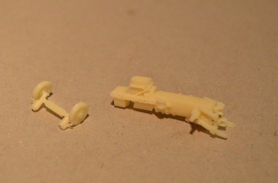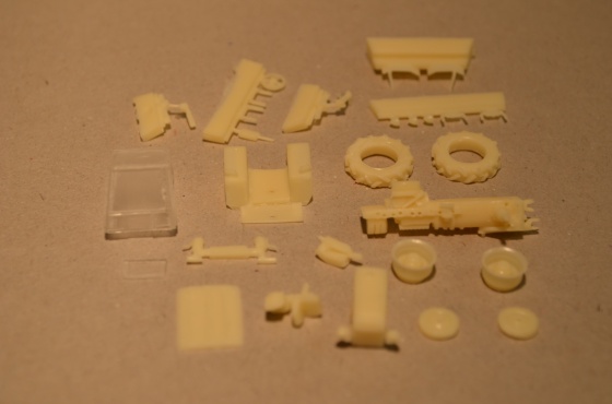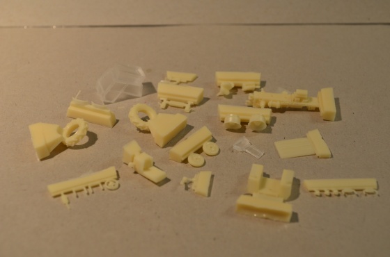 Jednotlivé díly jsou přesně a čistě odlity z polyuretanu. Kabina je odlita z čirého polyuretanu, ale jako dutá.