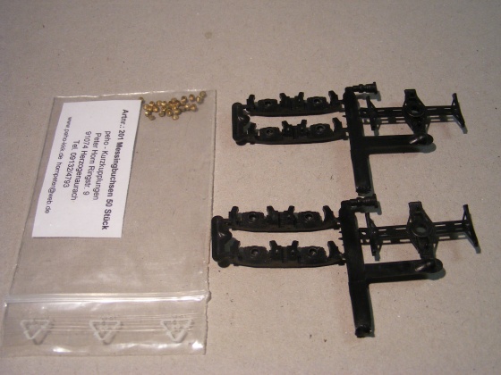 To Jarda: 1 pár stavebnice podvozků Y25 Čambalík – 50,-Kč, 4x dvojkolí po 18,-Kč, 1x lept nákl. vozu Hekttor 35,-Kč, 3x profily Evergreen-balení sice 70,-Kč, ale z každého max. 3/4 jednoho profilu, takže cca 17,-Kč/1ks, 2x spřáhlo 25,-Kč/1ks, 2x kinematika 50,-Kč/1ks, obtisky 49,-Kč, trochu barvy a laku, nárazníky 10,-Kč/4ks, 8ks ložisek po 5,-Kč.
