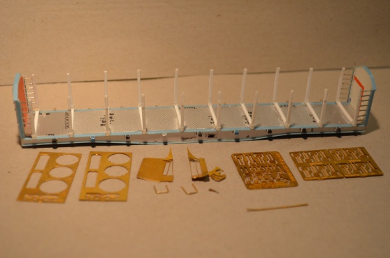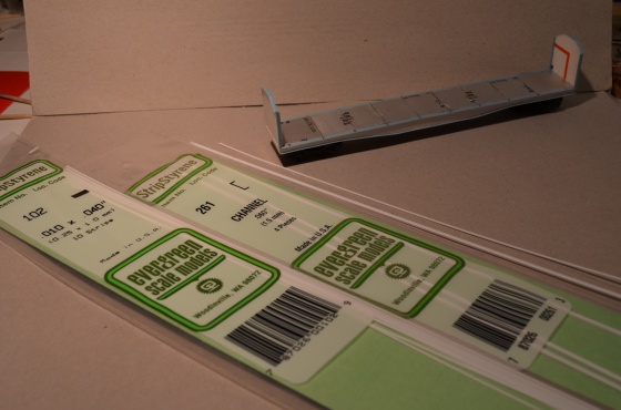 Z profilů Evergreen U 1,5 mm jsem nařezal vertikální výstuhy čel, lemování z Evergreen 0,25 x 1 mm.