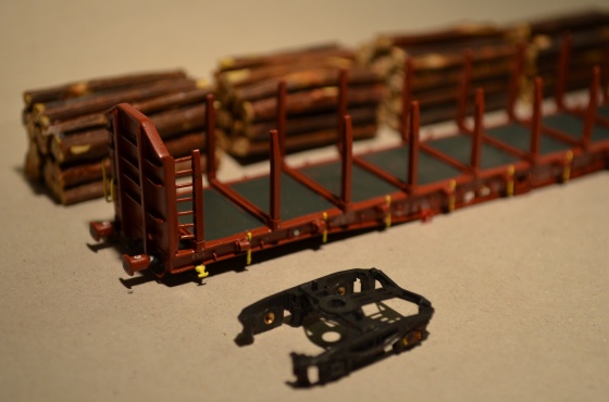 Posledním krokem byla kompletace a osazení kinematik se spřáhly. Ještě uvažuji nad naznačením poutacích popruhů přes náklad.