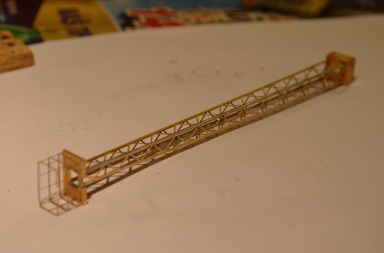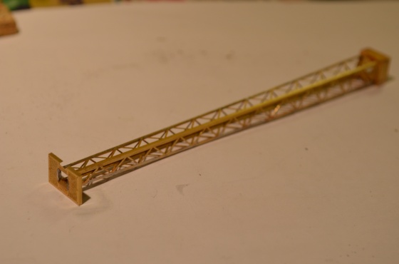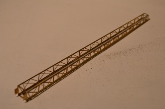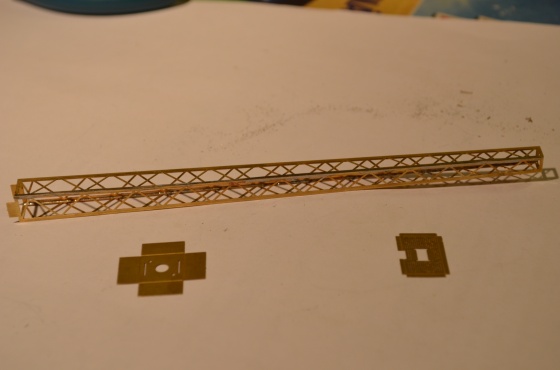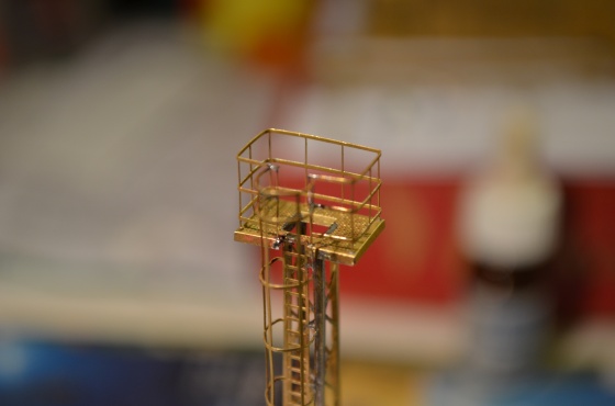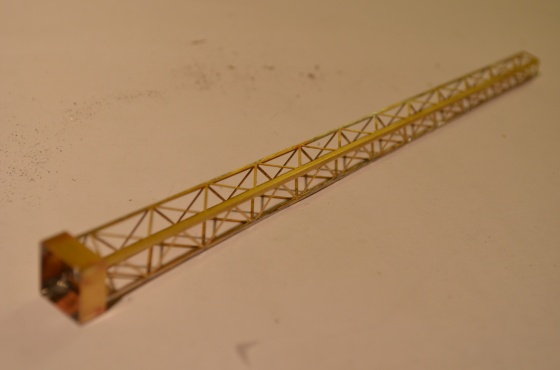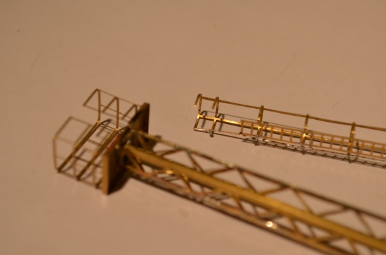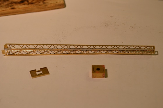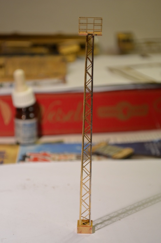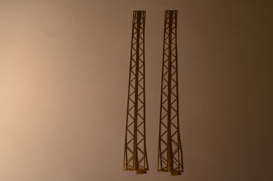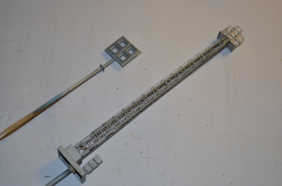 Stavebnička je na planžetě z mosazného plechu tl. 0,16 mm, její hlavní části jsou příhradový stožár, žebřík, ochranná mříž kolem žebříku, podstavec, plošina, zábradlí a osvětlovací rampa. Jako bonus je pak ještě další menší příhradový osvětlovací sloup a několik drobností. Součástí stavebnice nejsou potřebné LED diody (doporučené 4x PLCC2) a trubička pro přívod vodičů k diodám.