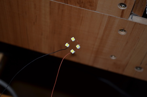 Vsadil jsem ledky do osvětlovací rampy a zafixoval proti pohybu zalepením.