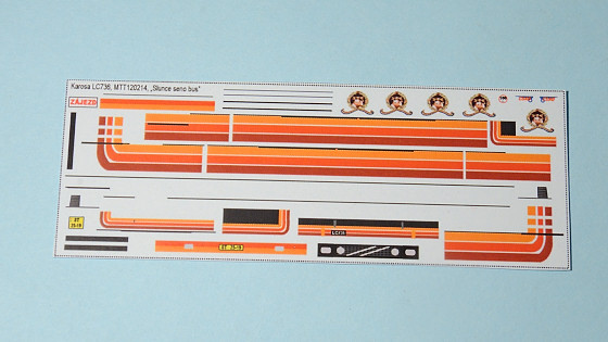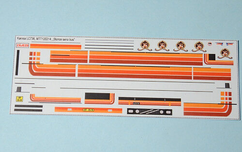 Obtisky obsahují základní univerzální motivy (přední masky, SPZ a další drobnosti). Z rozvinovacího seznamu můžete objednat obtiskové pruhy, které obsahují vše potřebné na obtisknutí bíle nastříkaného autobusu.