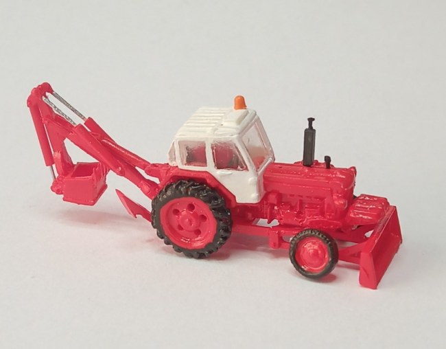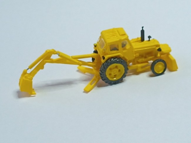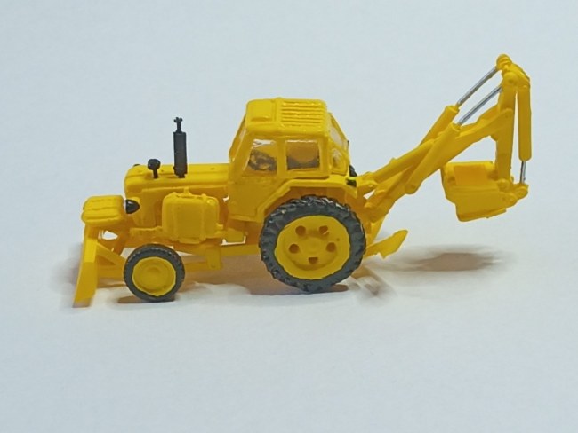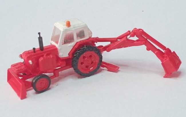 Polyuretanová stavebnice traktorového bagru Belarus JuMz EO-2621. Model lze sestavit plně pohyblivý, přední náprava je výkyvná. Kvalita odlití dílů je špičková, odlité jsou i ty nejdrobnější díly velmi detailně.