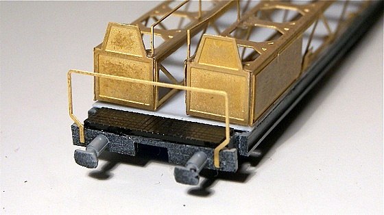 2 ks leptaného zábradlí na brzdařskou plošinu čtyřosých vozů Uacs/Raj nebo Falls/Wap. Slouží jako náhrada zábradlí plastových nebo ohýbaných z drátku. Výhodou je přesnější tvar a jemnější vzhled. Obsahuje také 2 madla na plošiny vozů Uacs/Raj. K dostání také ruční brzdy.