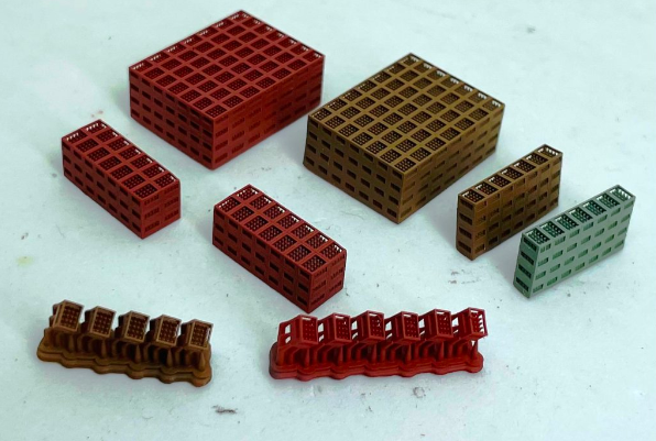 Náklad dřevěných pivních sudů. Několik různě velkých celků. 3D tisknuté díly.