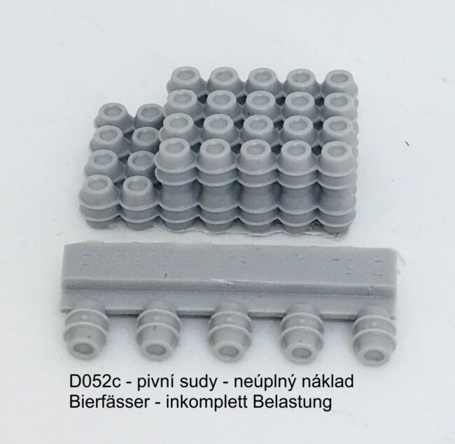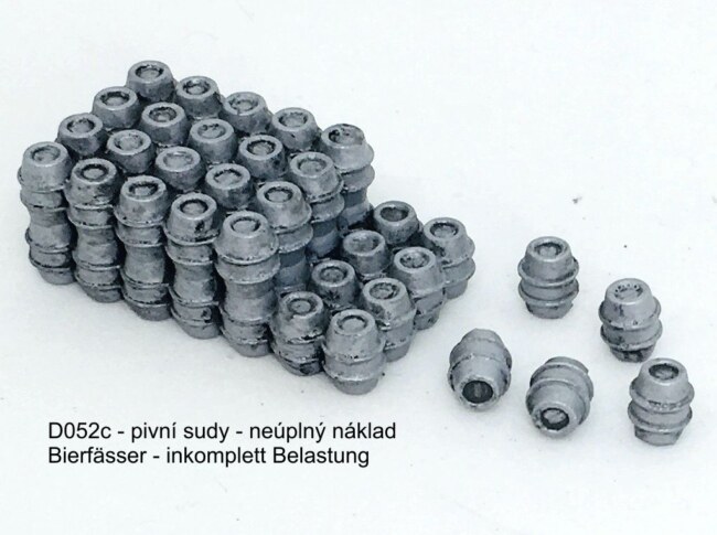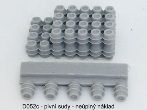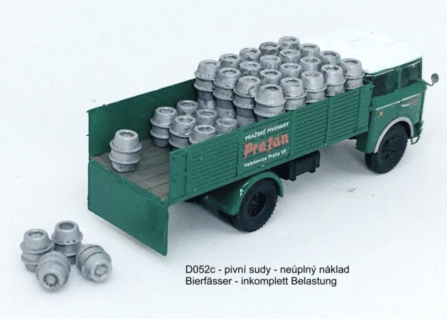 Náklad pivních sudů pro naložení na nákladní automobil nebo pro umístění v areálu pivovaru atd. Určeno pro Š706R a Š706RT, ale jistě bude pasovat i do jiných vozidel. Několik sudů je odlitých samostatně, zbytek v celku.