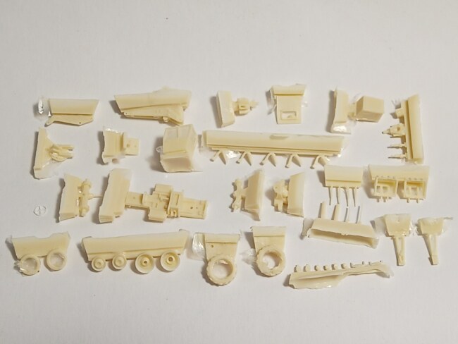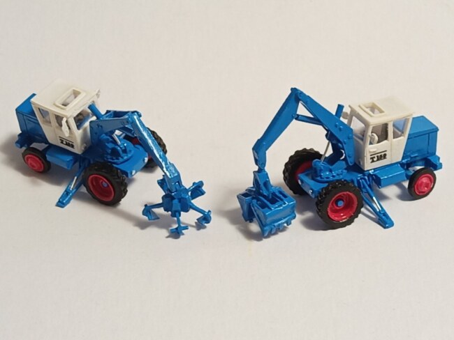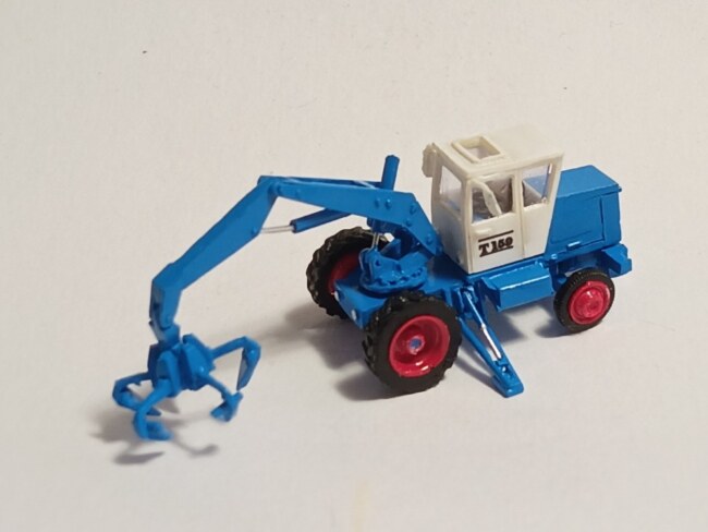 Polyuretanová stavebnice nakladače/jeřábu Weimar T159. Model je pohyblivý, možnost volby sestavení s mušlovou lopatou nebo drapákem. Kvalita odlití dílů je špičková, odlité jsou i ty nejdrobnější díly velmi detailně.