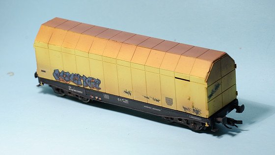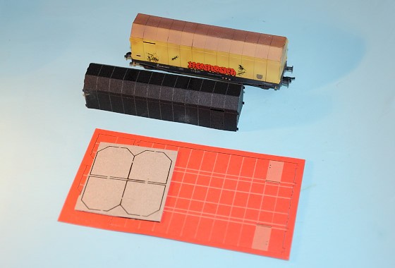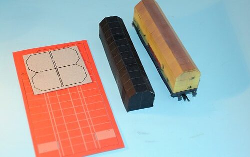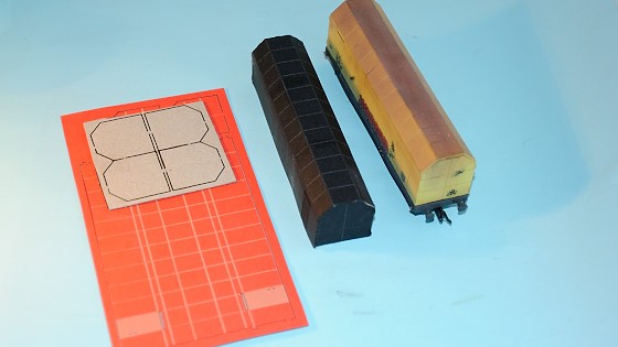 Použití: Osazuje se na vůz Pa od SDV nebo na upravený rám vozu Uacs od LPH s využítím lichoběžníkových podélníků od SDV. Díly se k sobě lepí disperzním nebo vteřinovým lepidlem. Z kartonu naohýbejte díl nástavby, zpevněte zevnitř 4 příčkami a na čela nalepte vnější díly čel. Více o stavbě starší leptané verze si můžete přečíst v článku.