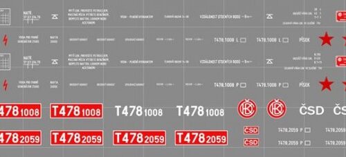 Obtisky vytvořené speciálně pro vlastní stavby legendárních Zamračených či pro přelakování továrních modelů firem MTB a Kuehn. Na objednávku lze za drobný příplatek (10,-) upravit popisky včetně provozního čísla na přání.