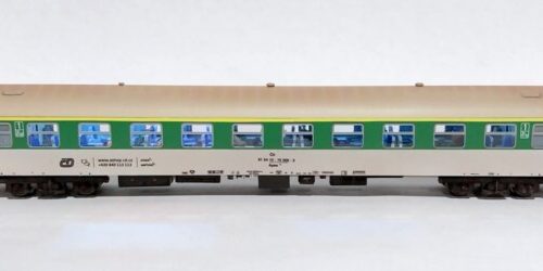 Obtisk osobního velkoprostorového vozu ČD Apee144. Obsahuje obtisky pro zeleno-šedý vůz V. ep. Obsahuje i popisy ČD e-ticket a žluté obtiskové pruhy.