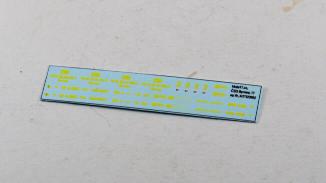 Určeno pro jakékoliv vhodné vozy – upravené pomocí leptané sady MojeTT (tam jsou již obtisky přiloženy) nebo pro odlitky / leptané stavebnice jiných výrobců. Možno také použít na vůz Tillig Halberstadt se středními vstupy.