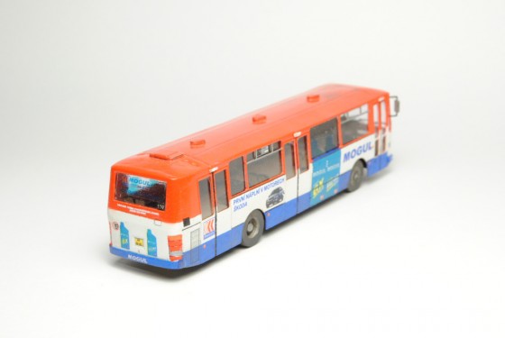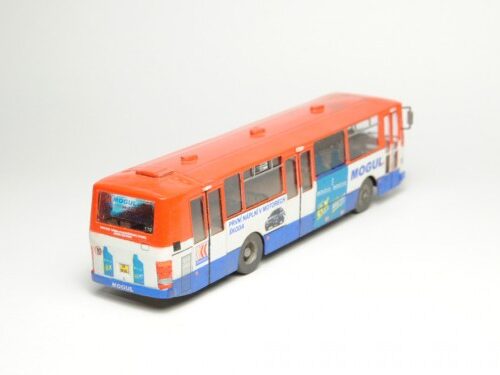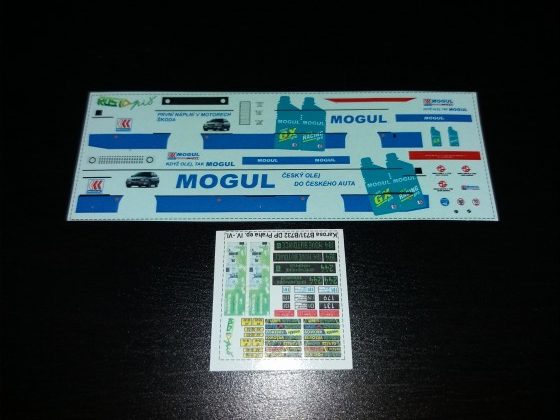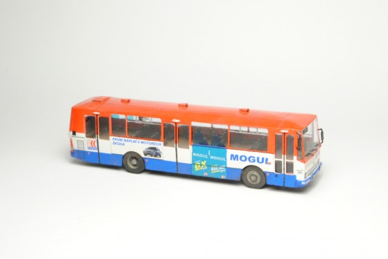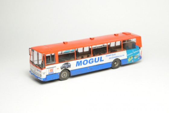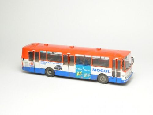 Obtisková sada pro autobus Karosa B731/B732 v pražském reklamním nátěru MOGUL. Podobně jako u ostatních sad i pro tuto stačí opatřit karoserii bílým nástřikem, o další barevnou úpravu už se postarají obtisky. Dobarvit je potřeba pouze nárazníky.