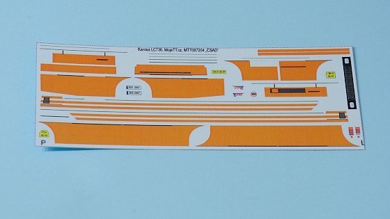 Obtisky LC736 pro „expresní“ verzi s tenkými proužky pod okny. Obsahuje vše potřebné pro obtisknutí bíle nastříkaného modelu včetně obtisku na nárazníky. Lze použít od epochy IV až po epochu VI. Po osazení obtisků je vhodné černou barvou natřít gumy na předním a zadním nárazníku a výfuk. Pod přední SPZ je třeba vytvořit opět bílý podklad (například natřít bílou barvou po obtisknutí žlutého nárazníku).