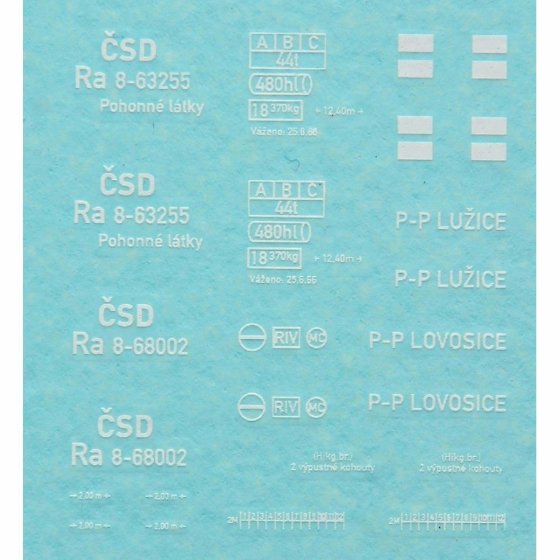 Obtisk pro čtyřnápravový kotlový vůz Ra. Vhodné kombinovat s leptanými doplňky od stejného výrobce – obojí je určeno pro úpravu továrních vozů BTTB. Vyrobeno novou technologií Wet Transfer, dále z webu výrobce: