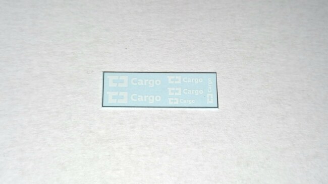 Obtisková sada univerzálních log na železniční vozy a lokomotivy. Obsahuje loga ČD Cargo ve třech velikostech. Délka 14mm, 9 mm a 6 mm po 2 ks, celkem 6 log.