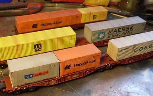 Obtisková sada pro kontejnery ISO. Obsahem sady jsou loga velkých světových rejdařských společností, které provozují kontejnerovou dopravu i na našem území. Sada obsahuje loga na velké 40´ kontejnery (5ks) a menší 20´ kontejnery (3ks). Na fotografii není vyobrazen 40´ kontejner P+O Nedlloyd. Obtisky pasují na kontejnery všech výrobců. Epocha V.-VI.